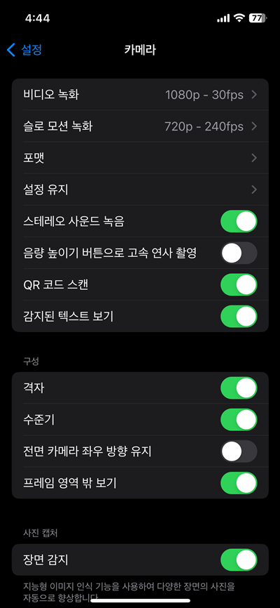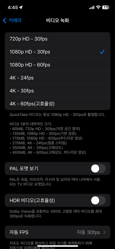 2. 아이폰 4K 비디오 촬영 설정